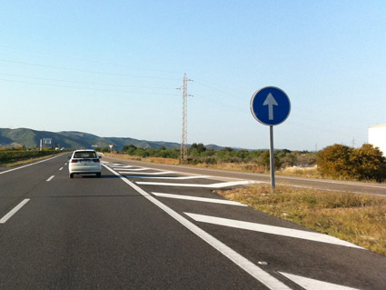 Conduciendo una motocicleta, ¿está permitido parar en el cebreado de esta autopista para realizar un descanso?