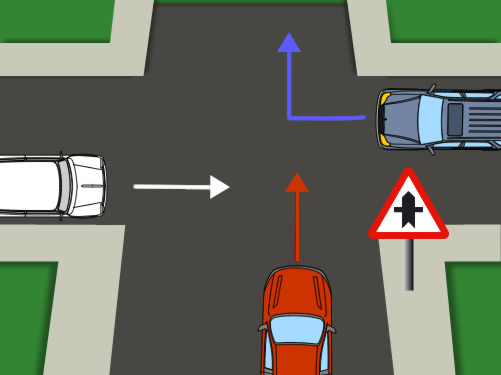 El vehículo rojo, ¿está obligado a ceder el paso en la intersección?